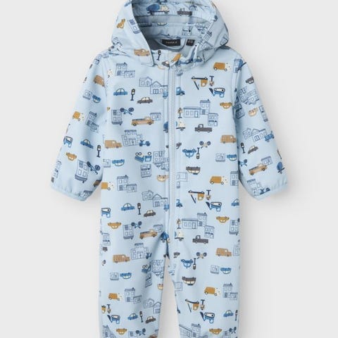 Selger en pent brukt softshelldress fra name it i størrelse 62-68. Dressen er lys rosa med blomster på. Den har avtakbar hette, og kan brettes ned over armer og ben.