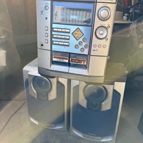 Forsterkeren fungerer, men én kanal har støy/parasit. Selges som reparasjonsobjekt eller til deler.