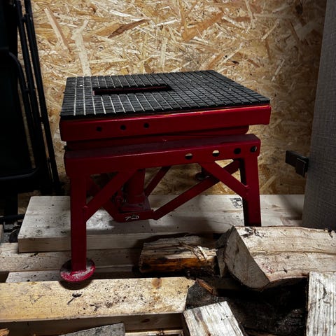 Feilen på løftebordet er sylinderen som ikke virker. Har byttet pakningene, men får ikke noe trykk til å løfte. Dette er ett bord som en gang i tiden har blitt brukt av Graarud mc. Kjempe kvalitet i plata. Kan løfte alt fra moped til goldwing når det fungerte. Her er en mulighet til å få ett kjempebord hvis man bytter sylinderen.