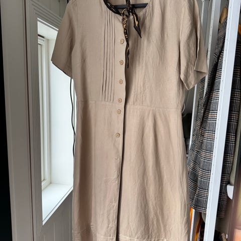Nydelig blå linkjole kjøpt i Italia. Str. L - XL. Følger med en lett skjorte til å ha utenpå hvis ønskelig.