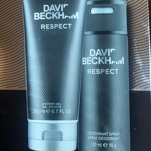 David Beckham Respect gavesett med dusjsåpe og aftershave balm. Produktene kommer i originalemballasje og er egnet for menn.