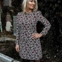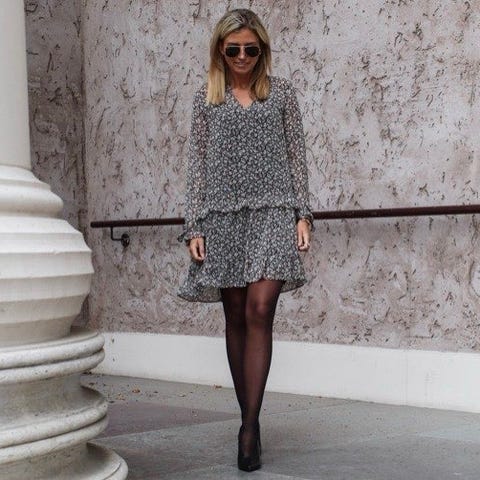 Fin kjole i svart, hvitt og rødt fra Pia Tjelta.