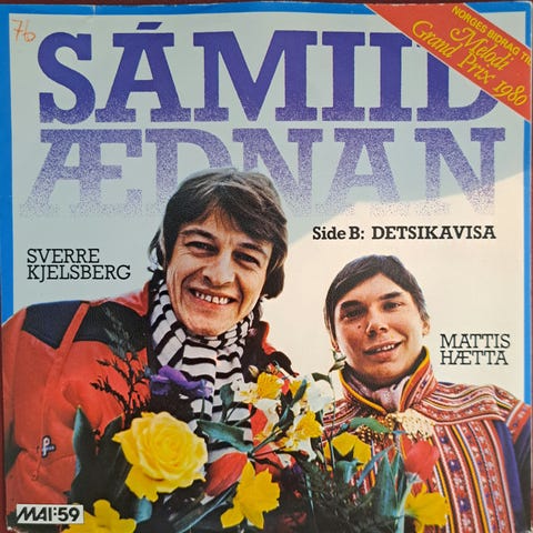 Vinylsingel med Samiid Ædnan både på norsk og engelsk. Pent brukt singel. Tør ikke gradere den etter standard skala da jeg ikke har peiling på sånne ting. Den er heller ikke prøvespilt men ser rimelig pen ut i vinylen og ingen synlige riper eller hakk.