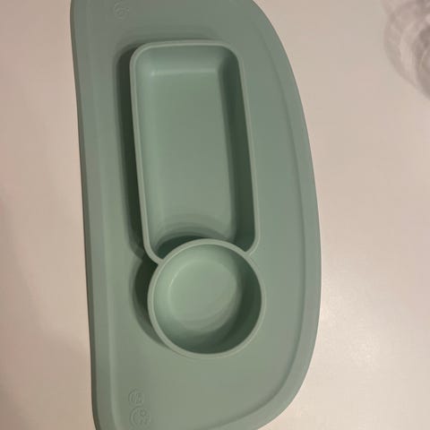 En helt super Ez Pz spisebrikke som sitter stødig og godt fast på et Stokke Tripp Trapp bord; genialt å ha de første årene når mini skal spise selv.