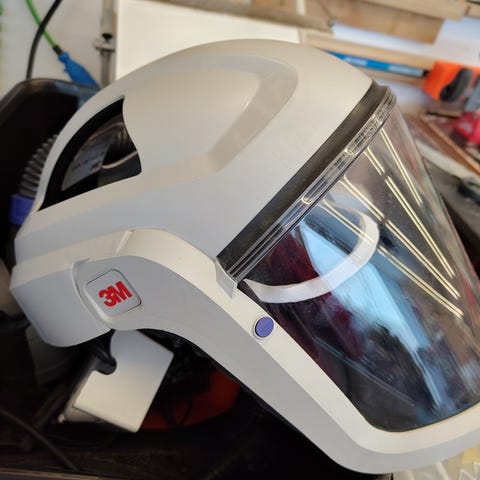 3M Versaflo M-306 pustemaske med helmaske-design. Masken har et klart visir og justerbar hodebøyle for tilpasning. Egnet for bruk i miljøer som krever beskyttelse mot partikler og gasser.