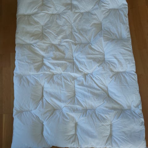 Ble kjøpt ikke så lenge før vi byttet tiil større dyne så den er relativt lite brukt. Nypris 1999 NOK. Vasket og har hunget ut i -15 grader så den skal være ren og fin.