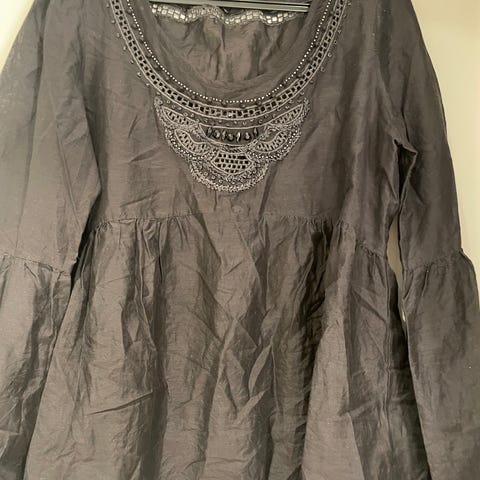 Lysegul genser med korte armer i str S/M selges kr 100,- pluss frakt