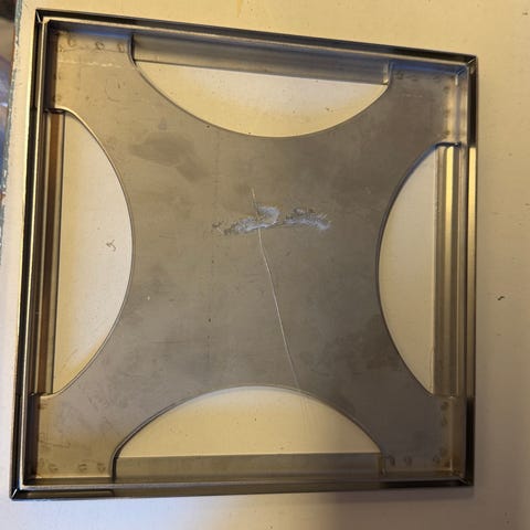 Geberit trykkplate i chrome/sølv. Esken viser lapp for hvit variant da jeg har skiftet fra sølv til hvit, festene som ligger i esken har aldri vært brukt.