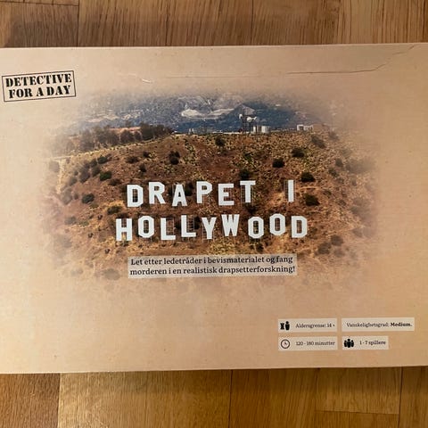 Drapet i Hollywood brettspel. Spelet er designa slik at deltakarne skal løysa ei mordgåte i Hollywood-miljøet.