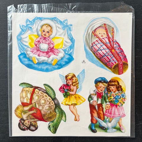 Gammelt flott norsk ark med glansbilder fra SAGA forlag