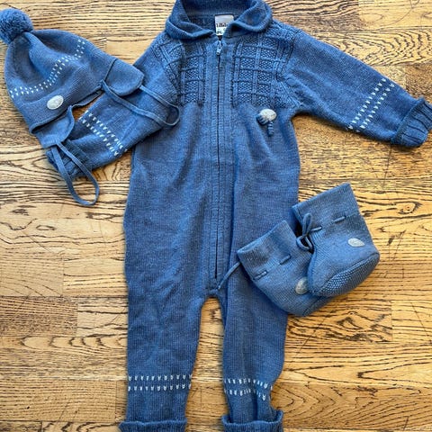 Lillelam barneheldress i merinoull blå størrelse 80 unisex