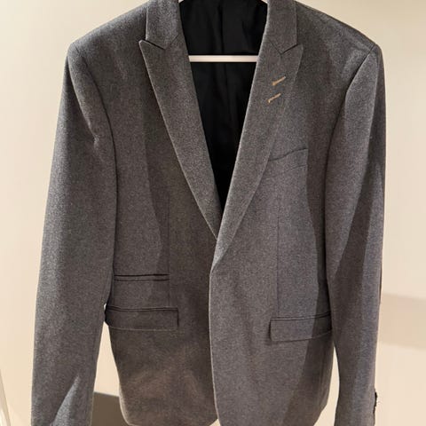 Flott mørkeblå blazer - ullblanding - str 48 (liten medium).