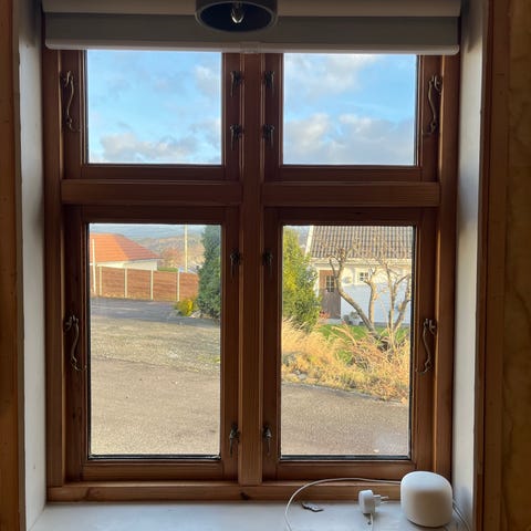 Alle vinduskarma har små merke av persienne.