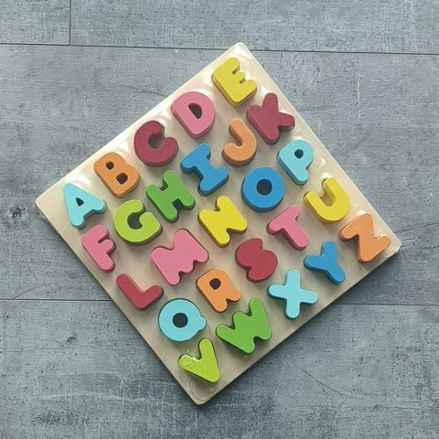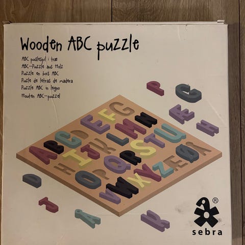 ABC Puzzle barnespill med 32 fargerike brikker i tre. Designet for barn fra 18 måneder og oppover, med bokstaver fra det norske alfabetet inkludert Æ, Ø og Å.