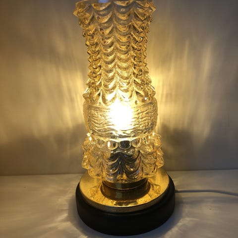 Flott lampett, med bruksspor. Skjermene er håndsydde vintage, med sine aldersspor. Små flekker i stoffet. Lys lys rosa silke. Syns de fortjener nytt liv!