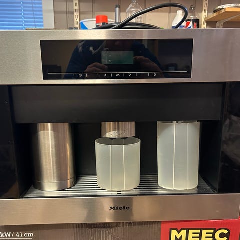 Fungerer som det skal .Miele kaffemaskin i svart med rustfritt stål-detaljer. Kompakt design egnet for kjøkkenbenkbruk.