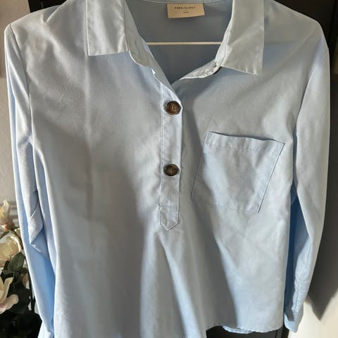Lyseblå skjortebluse med halv stolpe.