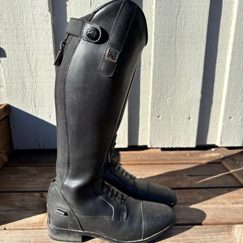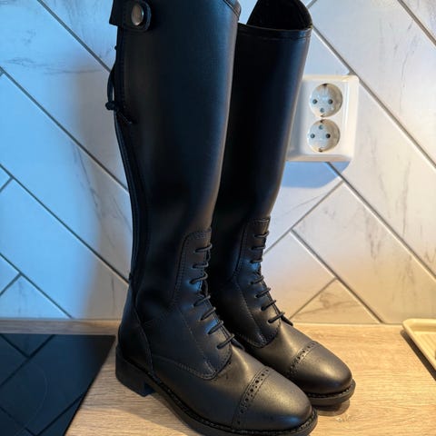 Støvlene har snøring foran og glidelås på innsiden. Egnet for ridning og hestesport.