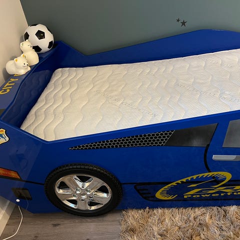 Kjøpte denne bilsengen i sommer, men selger den etter kort tid da den tar for mye plass i et litt lite barnerom 😅