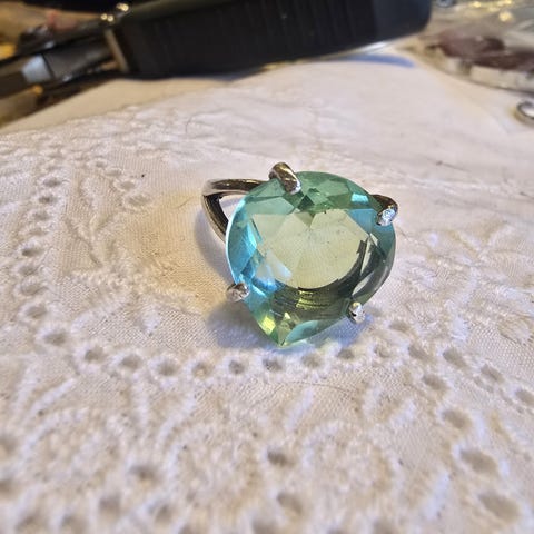 TANZANITT og PERIDOT 14 karat gullbelagt.925 sølv. Str 58💙