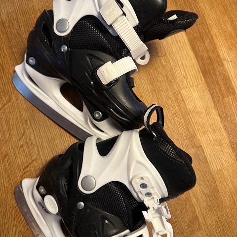 Rulleskøyte kan bli "inline" eller skifte til to hjul i bak for bedre stabilitet - se bilder. Hjuler ha LED som lyser seg når i bruk.