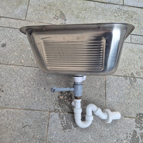 Ubrukt vask med skap, høyde ca 70 cm, med nytt blandebatteri og noen rør