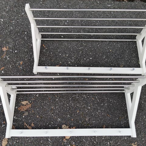 4 hyller, 2 enkle (60×15) og 2 dobler (60×20)