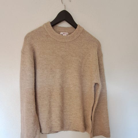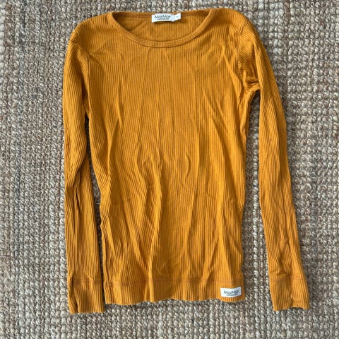 KappAhl genser for dame og jente i størrelse S, farge oransje, laget av bomull. Genseren er designet for jenter og dame og har en ribbestrikket tekstur med rund hals og raglanermer.