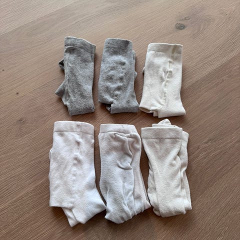 Ymse merker: hm, name it, newbie (KappAhl), Cubus, joha og Lindex. Den ene buksen er sydd selv.