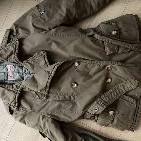 Pent brukt, behandlet med skinnpleie. Skinn er et levende materiale, og vil endre karakter og bli finere med årene. Passer str. 36/S, 34 om man vil ha den litt videre i passformen.