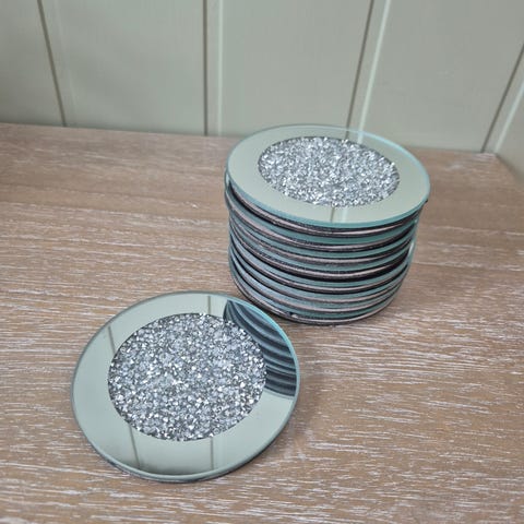 Engelsk Springer Spaniel glassbrikker i sett med 6 stk. Hver glassbrikke har et bilde av en springer spaniel med grønn og hvit kant. Passer til å beskytte bordflater mot kopper og glass.