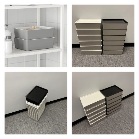 Denne varianten er utgått hos IKEA. Boksene klikkes sammen og er lett å montere og demontere.