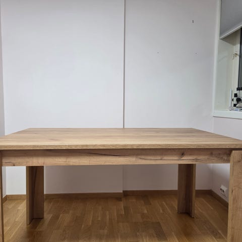 Selger brukt spisebord fra Jysk pga innkjøp av nytt spisebord. Bordet har noen mindre skrammer og bruksspor i overflaten som følge av normal bruk.