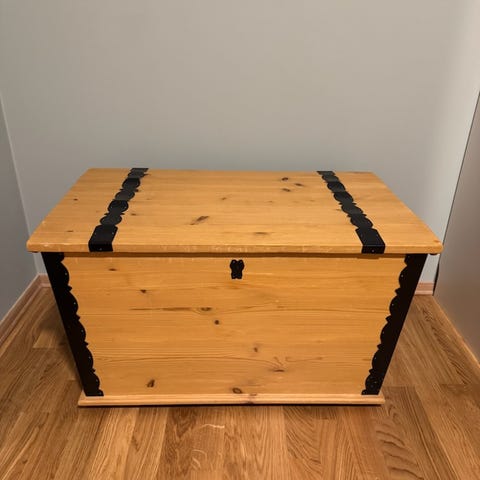 Pent brukt furu kiste. Mål: D: 44 cm, B 74, H 39. Må hentes