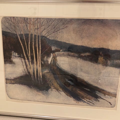 Vakkert Yngve Reidar Vold-litografi i gullfarget ramme, signert og nummerert av kunstneren.