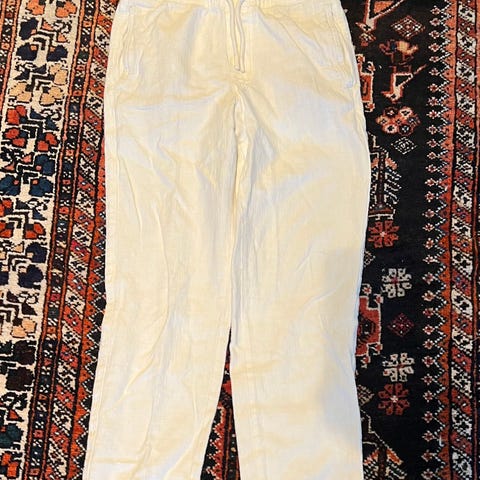 Zara bukser i størrelse S, blå farge og laget av bomull og lin. Buksen har elastisk midje med snøring og lommer foran og bak. Passer for menn.