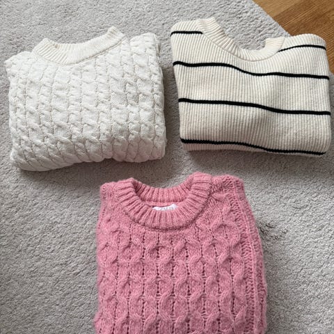 Selger en fin klespakke med gensere til jente i størrelse 122–128.