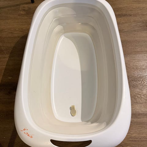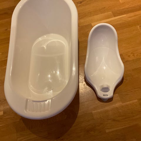 OK Baby badekar i grå plast. Badekaret har en ergonomisk form og er designet for å gi komfort under bading av baby. Badekaret har propp i bunn, og mål som vist på bildene. Det er pent brukt.