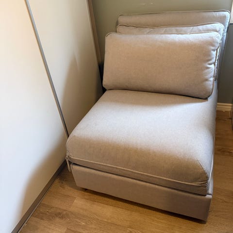 Smart og stilig lenestol og sovesofa som enkelt kan forvandles til en komfortabel sjeselong eller enkeltseng. Sengens mål er 190 x 70 cm.