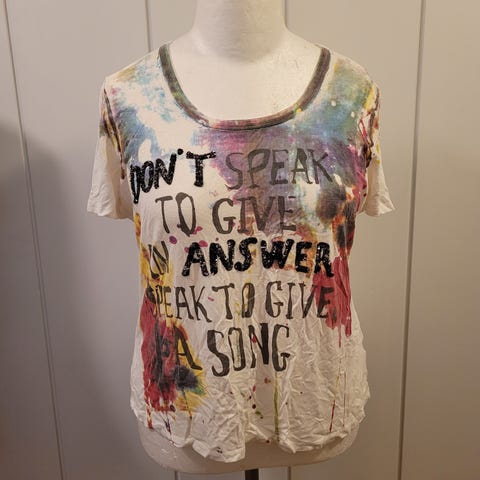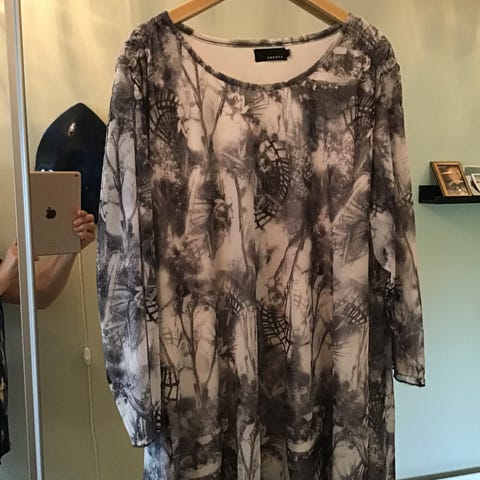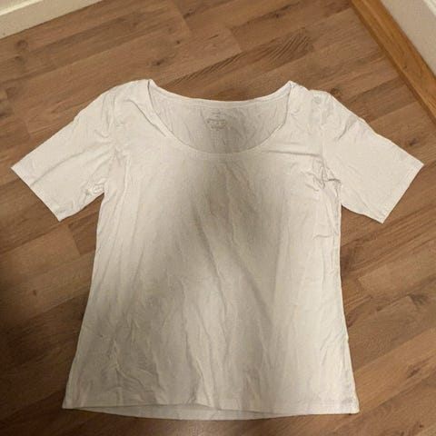 Andrea T-skjorte i størrelse XL for kvinner. T-skjorten er hvit med blomstertrykk og laget av bomull.kjempe fint og behagelig.