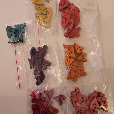 Knapper til klær, dekorasjoner og kreative prosjekter.