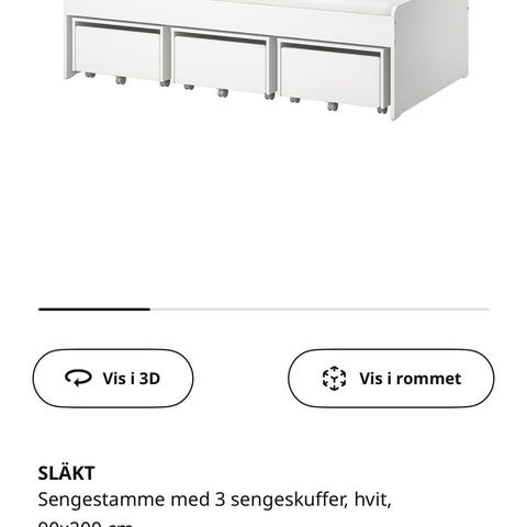 Släkt seng fra IKEA med målene 96x206 cm i hvit farge.
