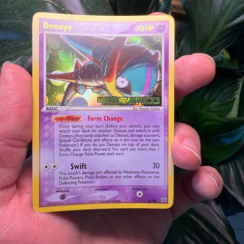 Selger et eksemplar av Deoxys fra Pokemon Emerald.