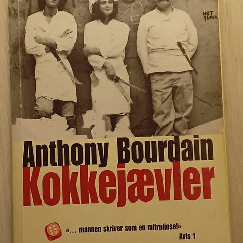 Anthony Bourdains 'Bone in the Throat' er en roman. Boken har et omslag med illustrasjon og tekst på engelsk. Den er utgitt av Canongate Books.