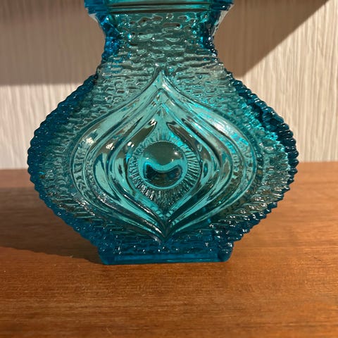 Blå uglevase fra Viking Glass Company, USA. 60-tallet? 22 cm høy.