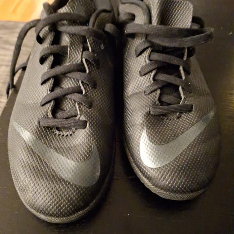 Nike Mercurial fotballsko i blå farge, størrelse 34. Mercurial Vapor 13 Academy IC Jr - Blue Hero - New Lights er visst fullt navn. Skoene har en syntetisk overdel og gummisåle, designet for bruk på kunstgress og innendørs baner. Ny modell er vel Vapor 16 som koster drøye 500 kroner. Pent brukt så prøver meg på 200 kroner eller gi bud.