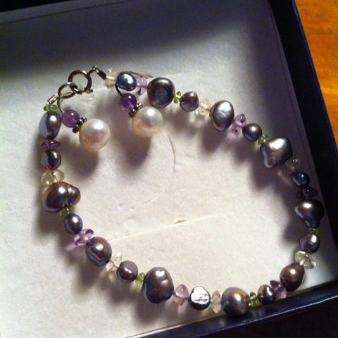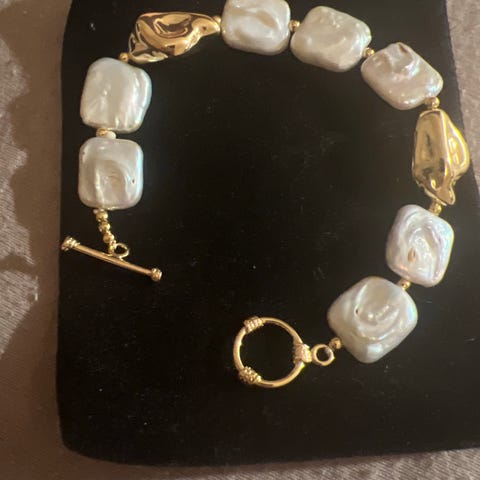 Seller super fint armbånd med ekte stor ferskvanns perle. Seller armbåndet som er øverst på bildet