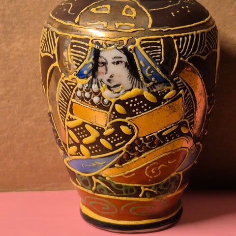 Japansk Satsuma-skål med trebase – håndmalt, rikt dekorert