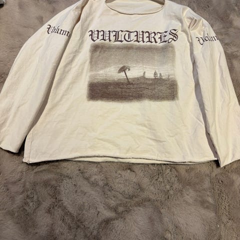 Kanye west merch genser i svart farge, laget av bomull. Størrelse L. Plagget har trykkdetaljer på front og ermet.
