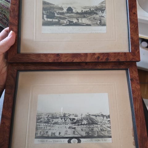 Fløyelen er myk, ren og i god stand, med kun lett aldersrelatert patina. Bakpapir og montering fremstår som typisk for midten av 1900-tallet. Bildet er montert i eldre ramme med tekstilpassepartout og har original oppheng.
